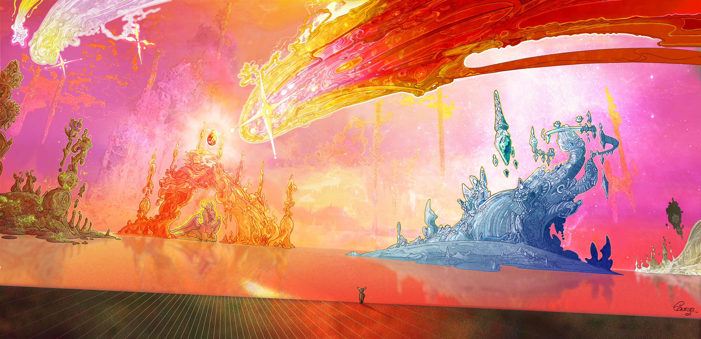 Speaking of glorious—this is the art I’m going to feature today. Enuryn’s Dragonthrone, featuring a tiny Rags and Teriarch! It’s so beautiful it’s become one of my desktop wallpapers. Give him lots of appreciation!