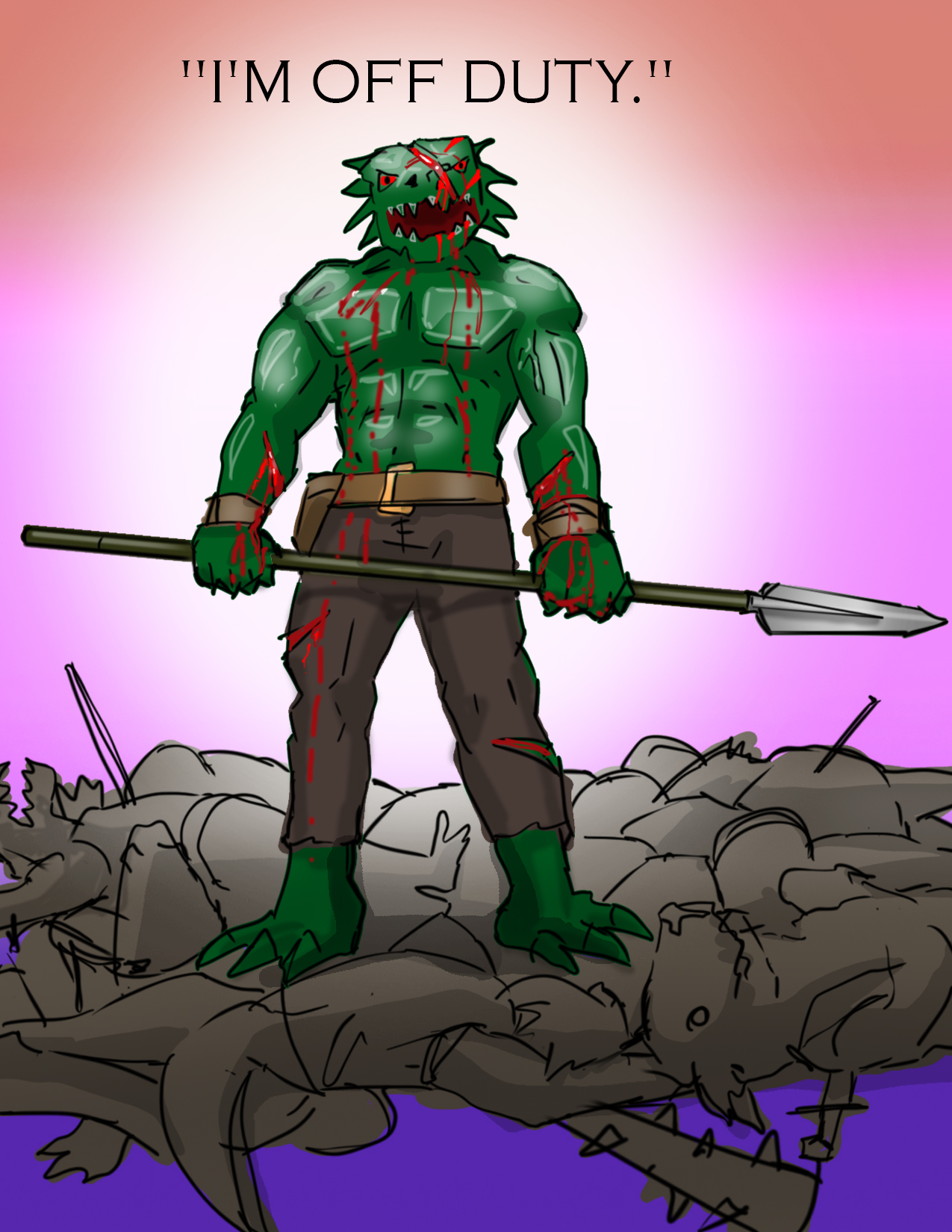 The Hundredfriends Courier saw the—fish?—burst out of the water. A Sea Serpent’s neck in its jaws. The serpent was writhing, screaming as its purple-red blood stained the waters.