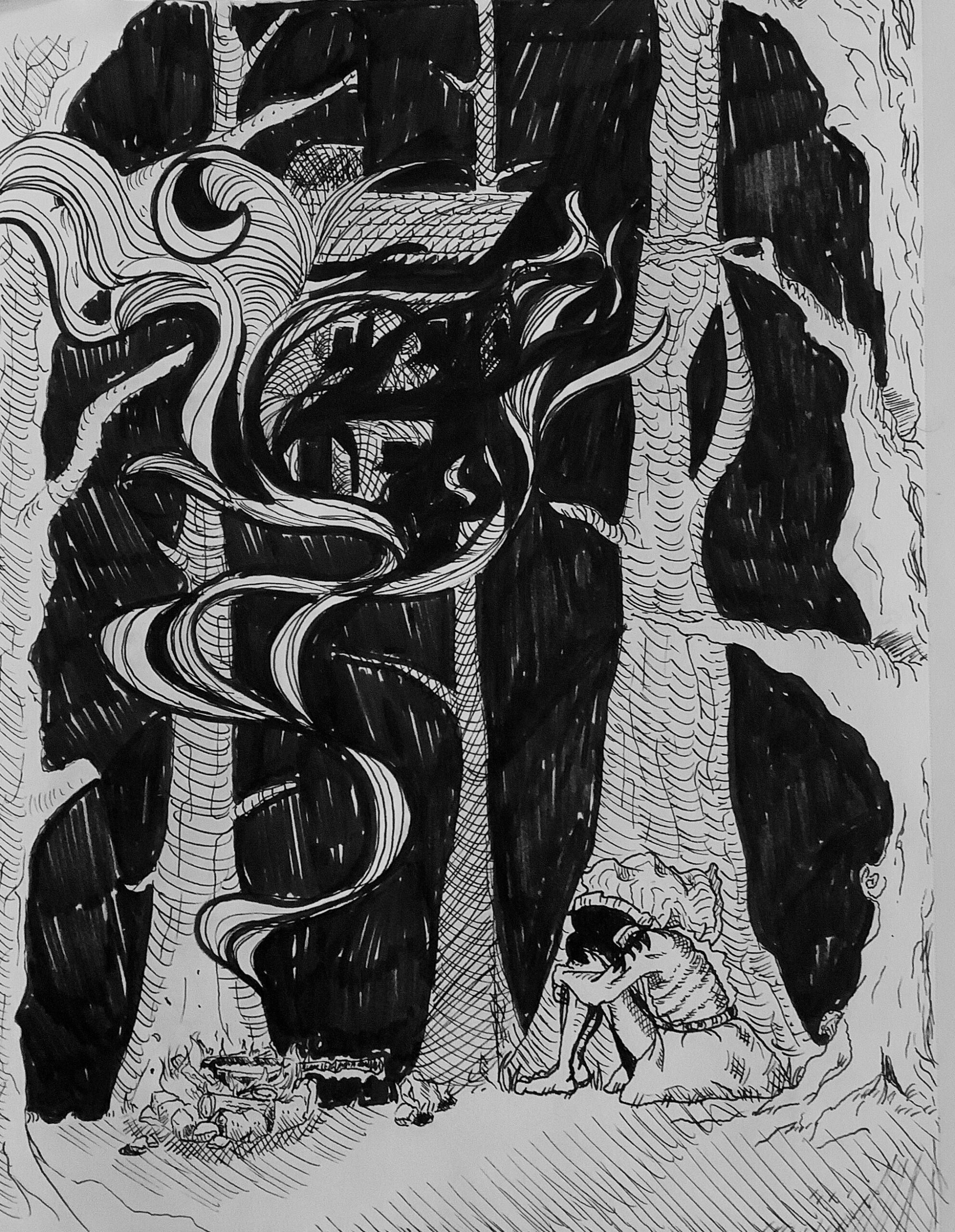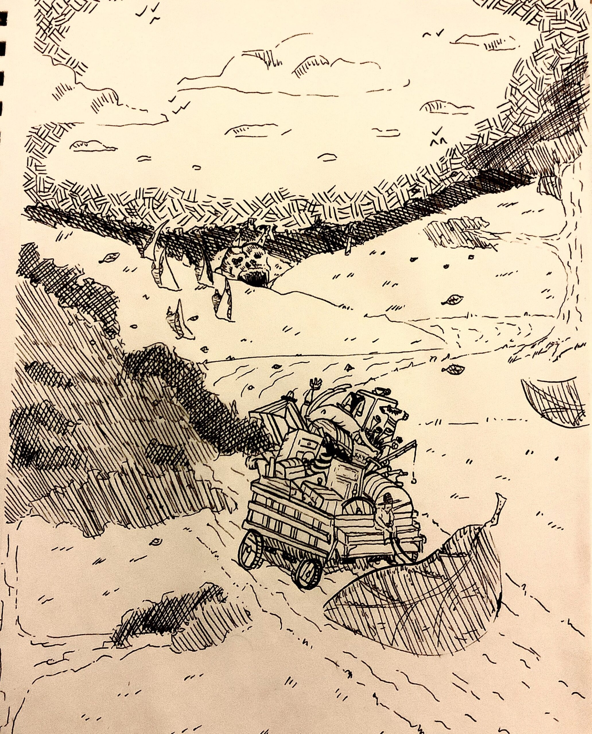 Yinah was relieved all the noise had stopped hurting her ears. She wanted to be picked up now. Nsiia obeyed. The animal peered down at Domehead. It stood there. Yinah’s Golem-legs were cold against her arm. Foreign.