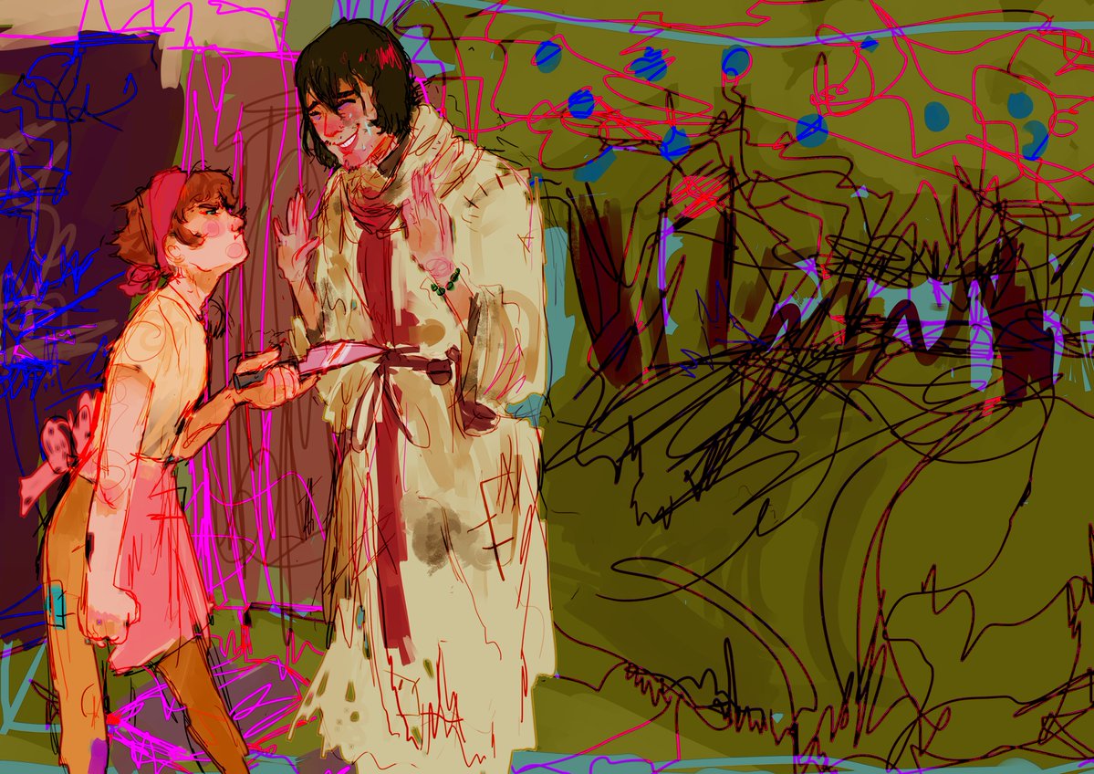 He swung his sword once. Someone handed him a bit of cloth and he tossed it down. When he turned, a nameless body lay on the ground. Blood soaking a book until the ink and parchment were useless.